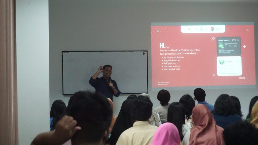 During the session, Andrew Yudha shared his personal and professional journey. He emphasized that success is not determined by how fast or slow the learning process is, but by consistency and perseverance throughout the process. Andrew also encouraged students to start with a fundamental question: “Why?”.