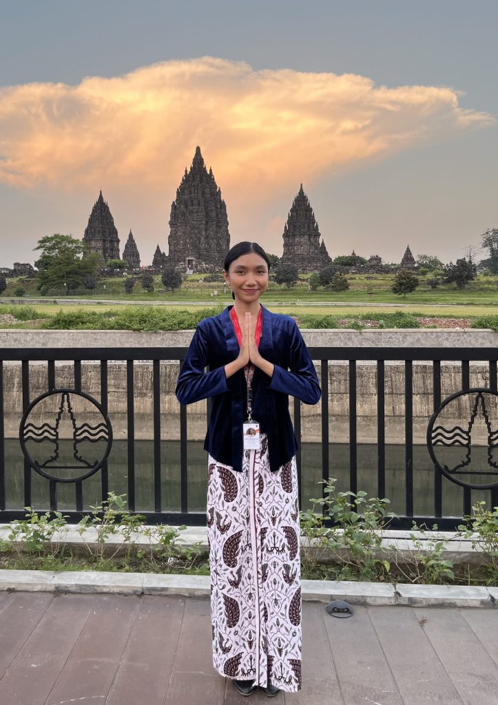 Kinarya Setyaning Tyas, an English Department student, shows that her major isn’t a limitation for learning and exploring her myriad of passions. As she entered her sixth semester, she was driven to seek an internship opportunity aligned with her interests. Her choice then fell on PT Taman Wisata Candi (TWC) Borobudur, Prambanan & Ratu Boko, which she believes can accommodate both her abilities as an English Department student and her particular interest in culture and arts. From there, she took initiative and applied for an intern position, where she began her delightful journey at Satuan Kerja Teater & Pentas Ramayana Ballet Prambanan.